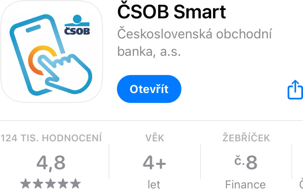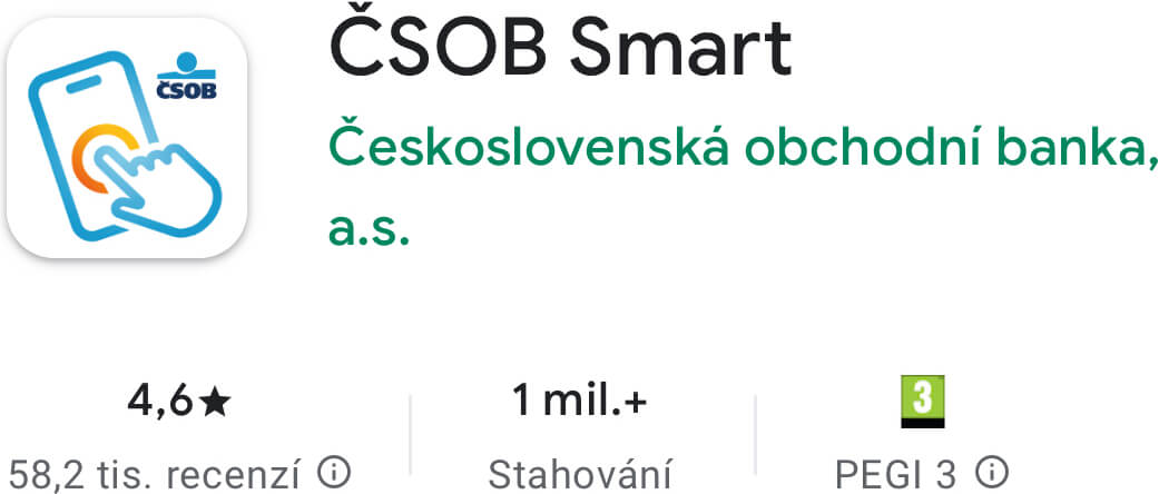 Mobilní aplikaci ČSOB najdete pod názvem ČSOB Smart.