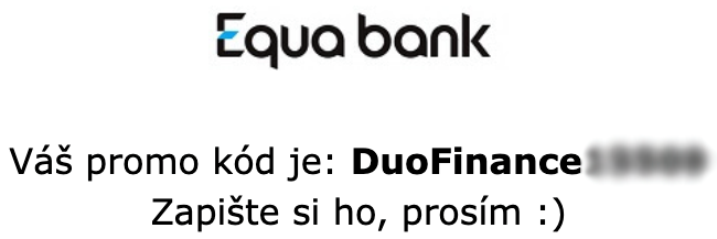 Zašlete promo kód a číslo nově založeného účtu v Equa bank na email bonusy@duofinance.cz.