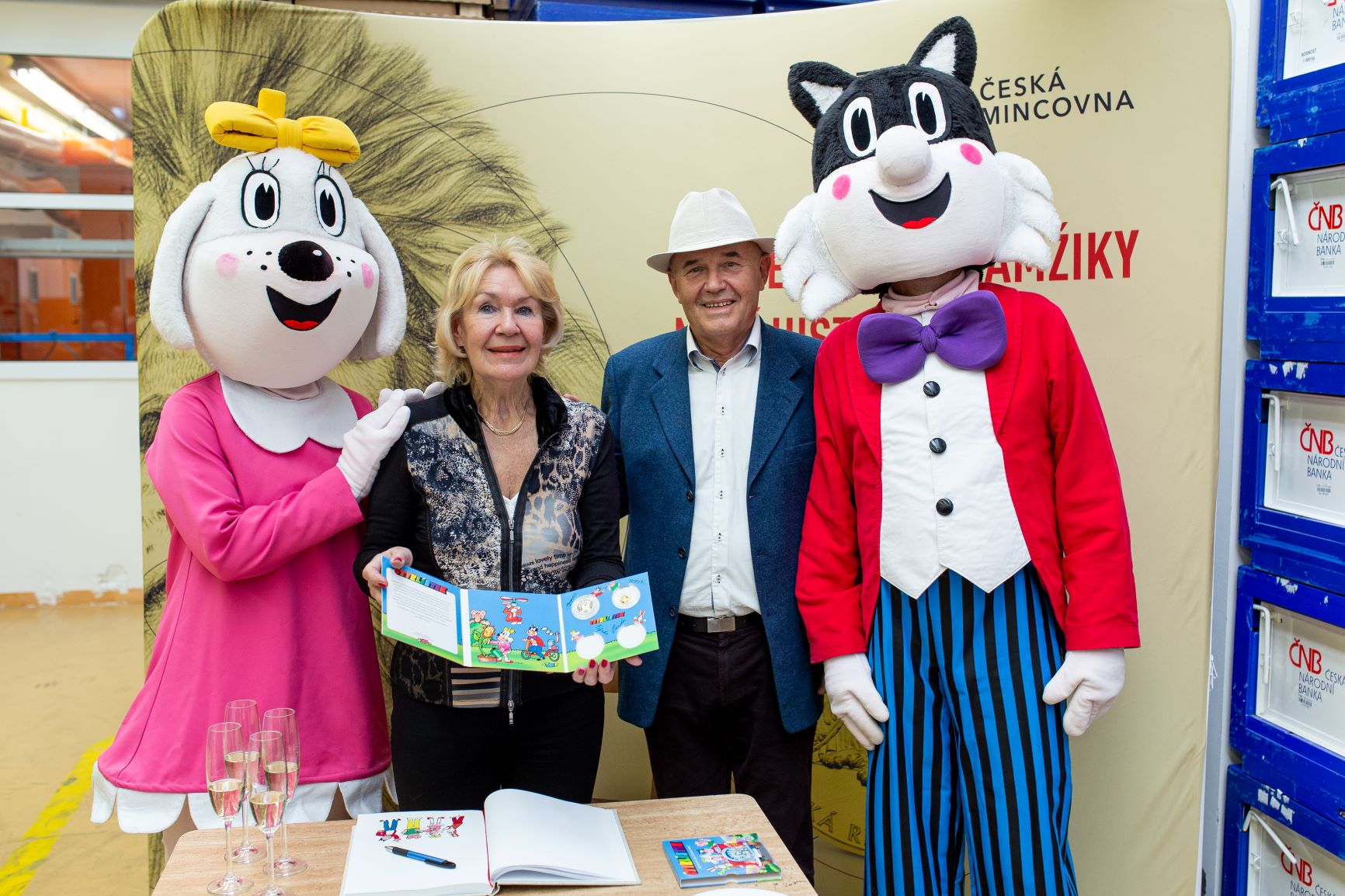 Česká mincovna razí sběratelské série pro děti. Na snímku manželé Němečkovi při ražbě postaviček ze Čtyřlístku.
