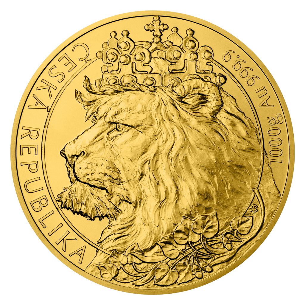 Zlatá investiční mince Český lev 2021 o váze 1 000 gramů