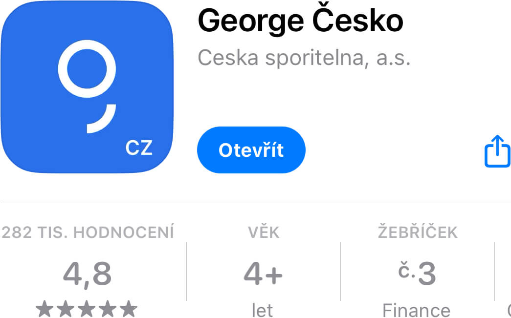 U největší tuzemské banky samozřejmě nesmí chybět mobilní aplikace. Aplikace České spořitelny se jmenuje „George“. Pro potvrzování karetních transakcí již nebudete potřebovat druhou aplikaci. Od roku 2024 se platby potvrzují přímo v mobilní aplikaci George.