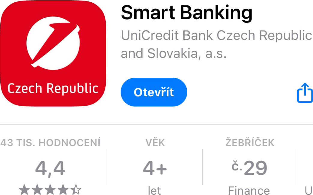 Mobilní aplikace se oficiálně jmenuje „Smart Banking“.
